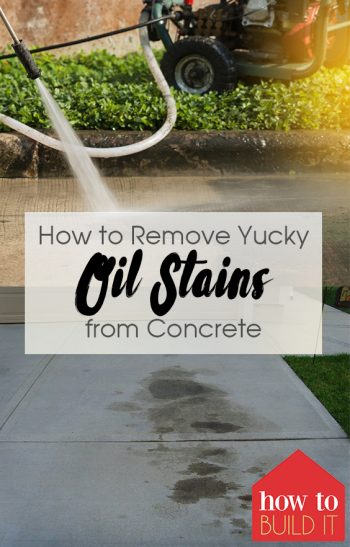 The video below gives tips for how to remove oil stains from concrete. Old oil and grease stains can be removed from concrete using a poultice. Start scrubbing with a strong bristled scrubbing brush or broom. Finish up with a proper rinsing of the whole area to get oil stains out of concrete. If so, let us know what method you used and how it turned out.